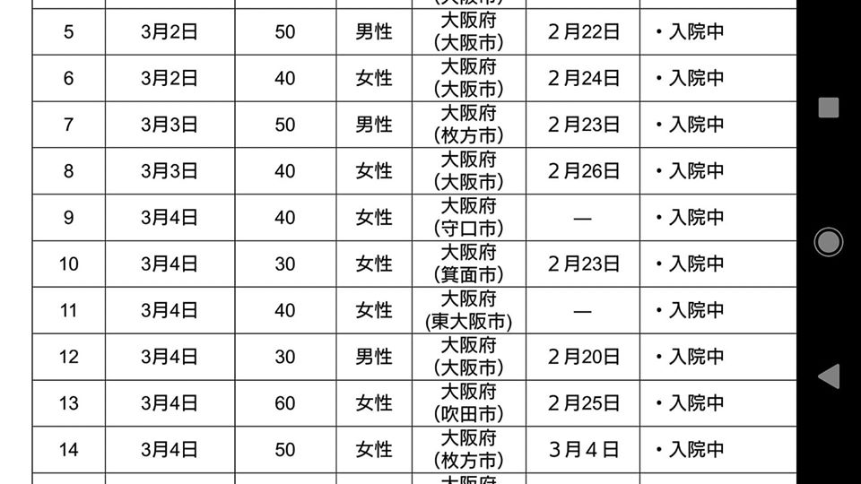 大阪府ではリンク先で公表されているライブハウスに行った人を探しています。