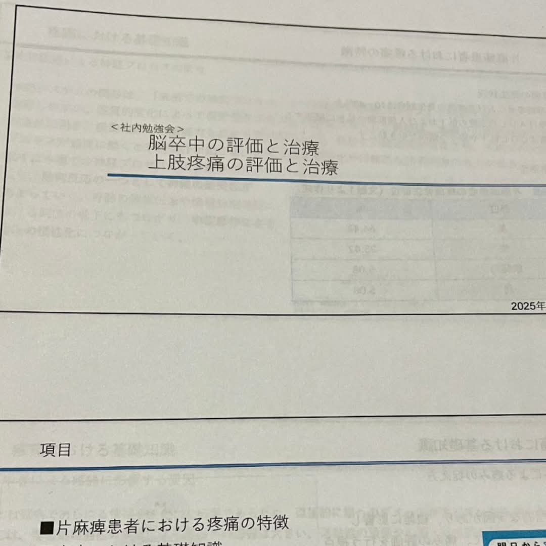 今週の勉強会は「脳卒中の評価とアプローチ」をテーマに行いました。