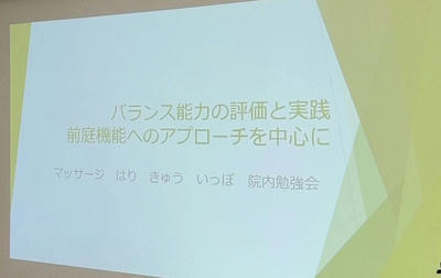 今週の勉強会は、バランス能力の評価と実践(前庭機能へのアプローチを中心に)をテーマに行いました!