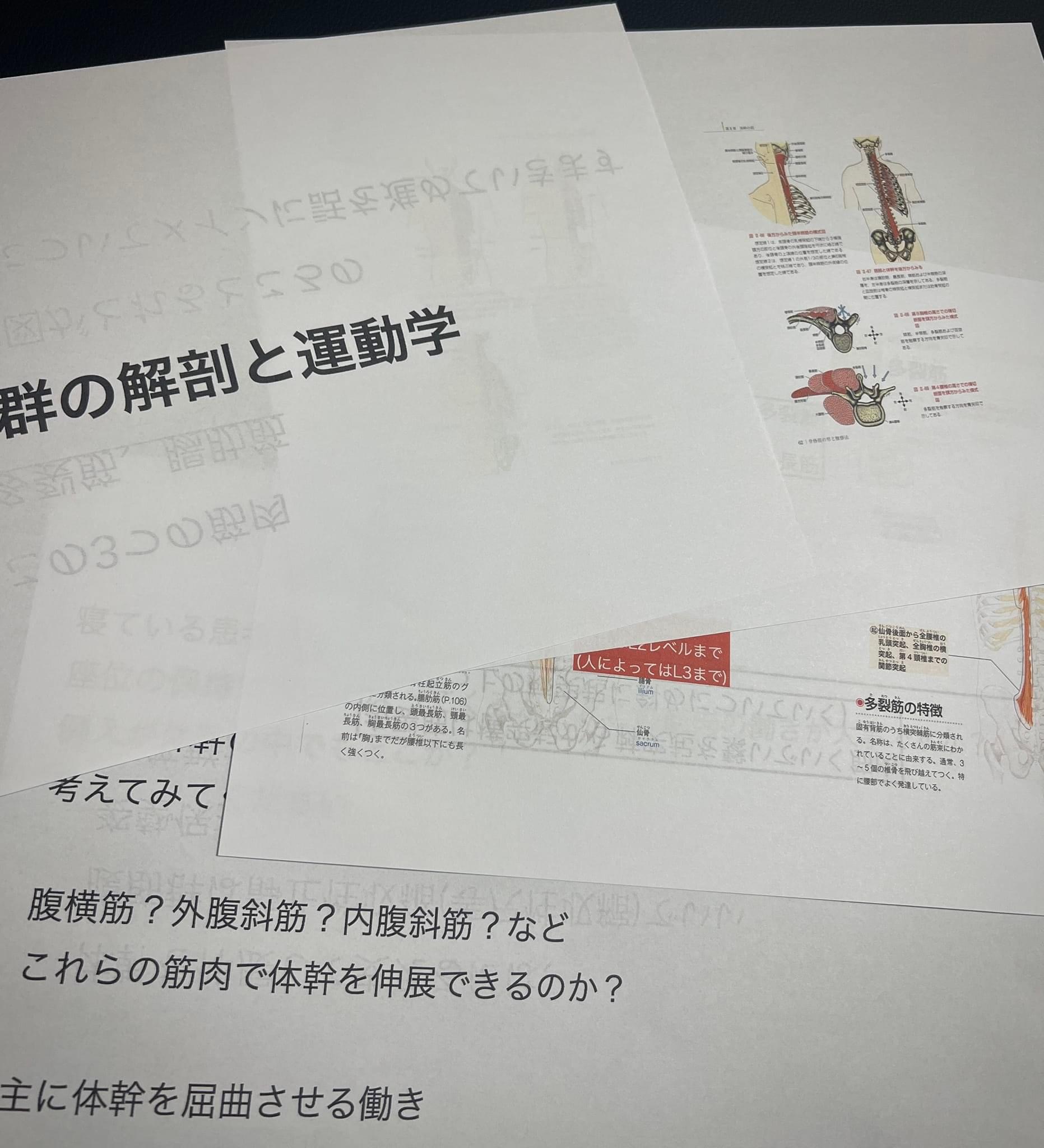 今週の勉強会は、腰背筋群の解剖と運動学をテーマに行いました。
