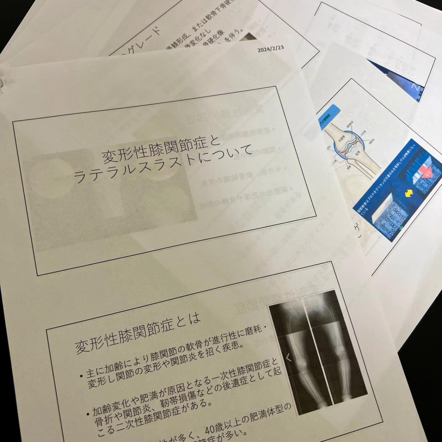 今週の勉強会は、変形性膝関節症とラテラルスラストについて行いました。