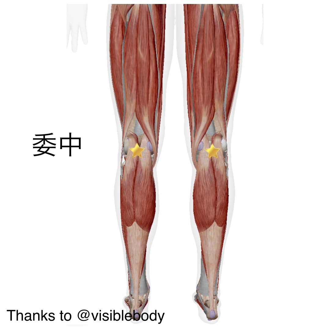 本日は、腰痛にオススメの委中というツボをご紹介。