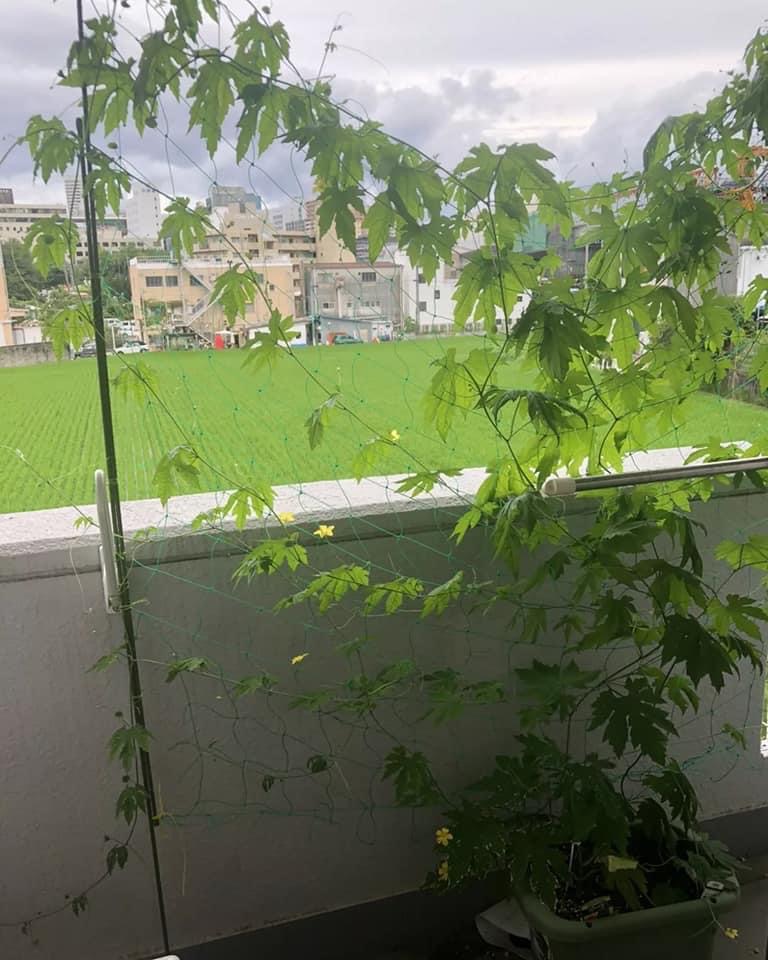 いっぽ控室のゴーヤが絶好調に育っています。
