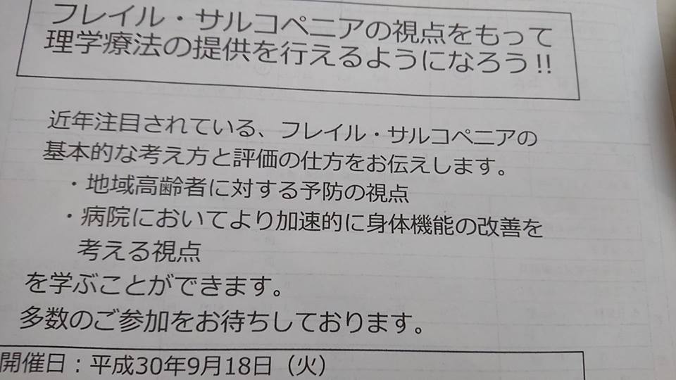 業務終了後にサルコペニアとフレイルについて勉強してきました。