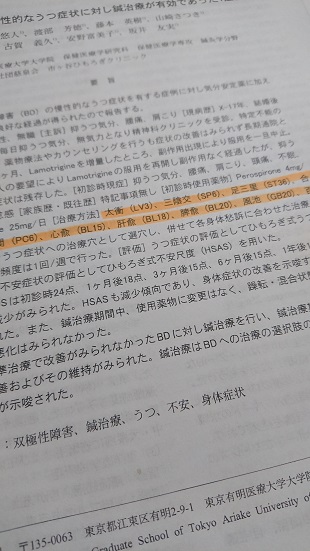 慢性的なうつ症状に鍼灸治療が効いたという文献を見つけたので、それをもとに勉強しました。