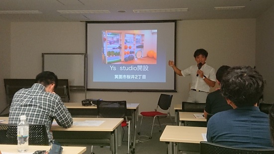 講師はやわらホールディングス株式会社の濱崎さん。理学療法士として働く以外にも、箕面市桜井2丁目のYs studioにてパーソナルトレーニングも提供しています。子供から高齢者まで、健康増進やダイエットからアスリートのパフォーマンス向上まで、専門的知識を活かして大活躍しています。