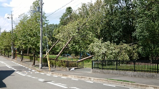 翌日、訪問業務に出かけると、いたるところで木が倒れていたり、フェンスや壁が倒れたりしていました。6月の地震の時も話題になっていましたが、ブロック塀の上に設置してあるフェンスはかなりの数が倒壊していましたね。ブロック塀のもろさを改めて感じました。信号も消えてしまったり、向きが大きく変わってしまっていたり、台風の爪痕がいたるところに残っていました。
