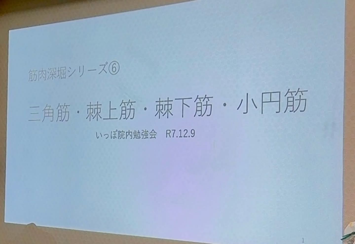 今週の勉強会は、筋肉深掘りシリーズの第6回を行いました!三角筋、棘上筋、棘下筋、小円筋をテーマに行いました。これらの筋肉がどのように作用しているか?またどのように影響することで、痛みが出ていたり動作を制限してしまっているかなどを考えました。平面的に考えていると、立体的なイメージができずうまくアプローチできていないこともあります。骨模型などを使用して、スタッフ同士でディスカッションを行いました。今回も意見交換ができて質の良い勉強会になりました!#いっぽ#いっぽのスタッフ投稿#訪問マッサージ#訪問鍼灸#マッサージ#機能訓練#リハビリマッサージ#鍼灸#箕面#豊中#池田#吹田#茨木#勉強会国内や海外の医療機関や在宅サービスで経験を積んだセラピストをはじめ、経験豊富な施術者がご自宅に伺い施術を行います。