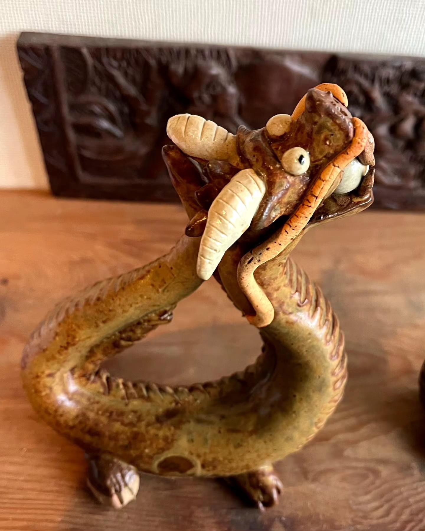 あけましておめでとうございます!4日から仕事始めでした。利用者様の晴れ晴れした笑顔で迎えてもらっています(笑)昨年の11月に地元で陶芸体験がありましたので参加してきまし。ご年配の方々に囲まれて和気藹々作れて良かったです。年末に焼き上がったものを取りに行きました。テーマは干支の辰です。架空の生き物を形にするのは難しかったですが、土こねて作るのは楽しいです。